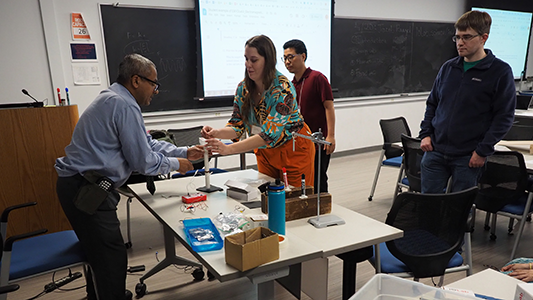 On April 19-20, 2024 Illinois Physics hosted more than 45 teachers across Illinois for the 2024 Spring AAPT Meeting, organized by Morten Lundsgaard, Coordinator of Physics Teacher Development. The meeting was kickstarted by an IOLab workshop, followed by several speakers from Southern Illinois University, Illinois State University, Romeoville High School, Parkland College, and University of Illinois Urbana-Champaign. The full program can be found at https://sites.google.com/view/illinois-section-aapt/meeting-archive/spring-2024.