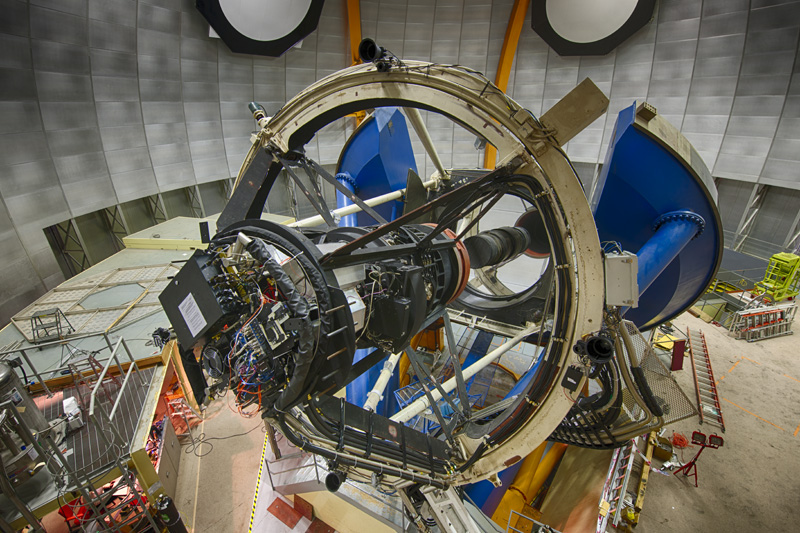 The Dark Energy Camera, mounted on the Blanco telescope at the Cerro Tololo Inter-American Observatory in Chile. Credit: Reidar Hahn/Fermilab.Over the next five years, a team of physicists from around the globe will use this remarkable instrument to try to answer some of the most fundamental questions about our universe. The survey’s goal is to find out why the expansion of the universe is speeding up, instead of slowing down due to gravity, and to probe the mystery of dark energy, the force believed to be causing that acceleration.