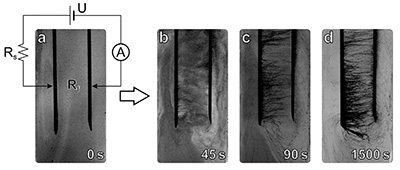 “Toward the final stages of this regime, the appendages were not destroyed during the avalanches, but rather retracted until the avalanche ended, then reformed their connection. So it was obvious that the avalanches correspond to the ‘feeding cycle’ of the ‘nanotube inset’,” comments Bezryadin.