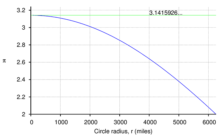 Fig. 2. Plot of π vs. circle radius on Earth.