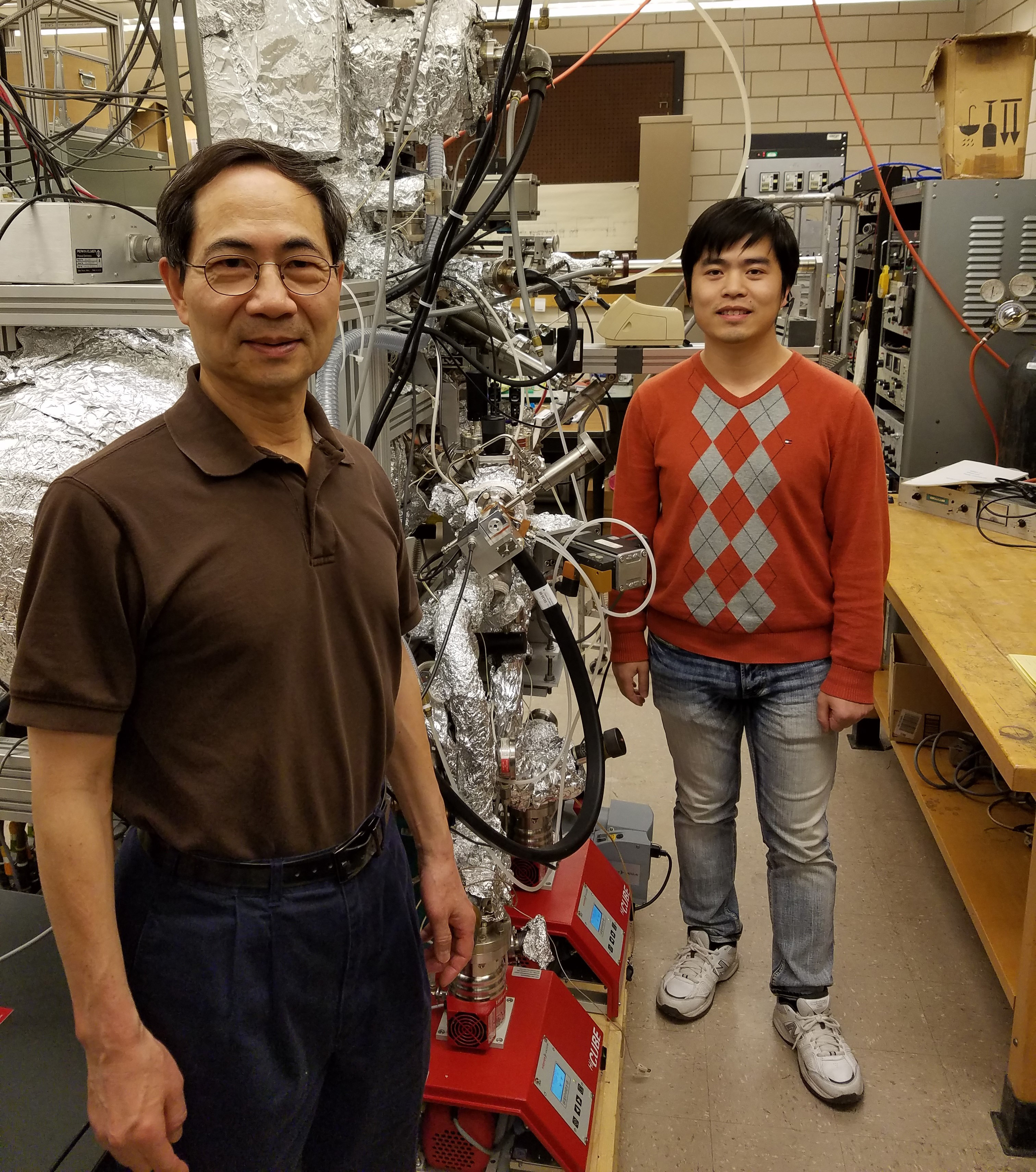 Physics Professor Tai-Chang Chiang and graduate student Caizhi Xu pose in Chang's laboratory at the Frederick Seitz Materials Research Lab at the University of Illinois at Urbana-Champaign. Image courtesy of Physics Illinois.