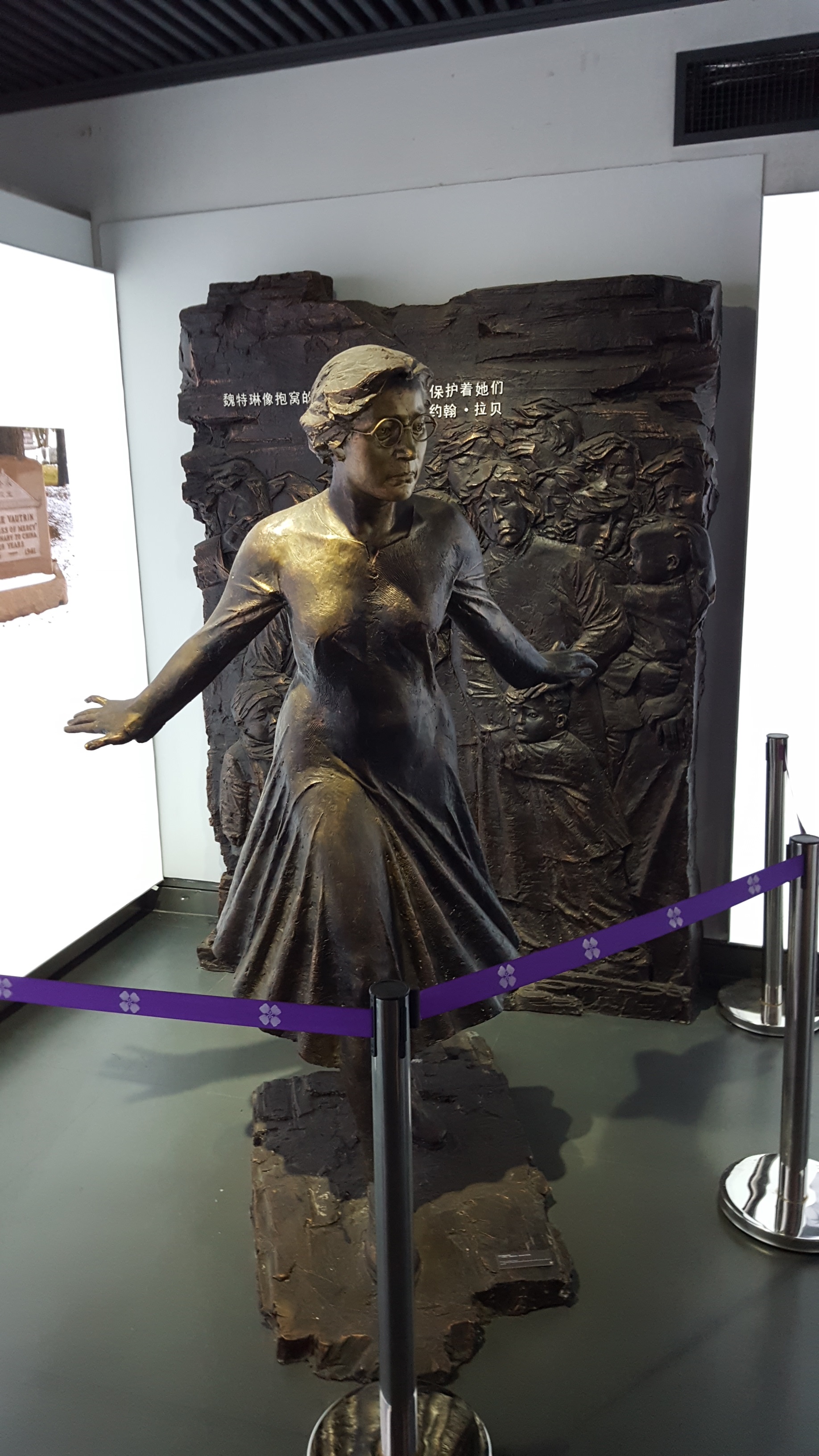 Minnie Vautrin Statue at the Nanjing Massacre Memorial Museum in Nanjing, China. Vautrin is a native of Secor, Illinois and a U of I alumna, class of 1912, who saved more than 10,000 girls and woman during the Nanjing Massacre from December 1937 to February 1938. The statue shows Vautrin protecting Chinese civilians who are displayed on the relief in the back. In Nanjing Minnie Vautrin is known as the 'Goddess of Mercy for Women and Children in Nanjing.' Location: Nanjing Massacre Memorial Museum in Nanjing, China. Photo by: Matthias Grosse Perdekamp, July 28, 2017As acting president of Ginling College, Minnie Vautrin (Illinois class of 1912) sheltered more than 10,000 Chinese women from rape and deadly violence during the Nanjing Massacre. The Program in Arms Control & Domestic and International Security (ACDIS) at Illinois will host a symposium recalling the history of the Sino-Japanese war and honoring Vautrin. The Forgotten Holocaust of World War II: The Massacre of Nanjing will be held on December 16, 2017, at the Levis Faculty Center, Room 300, 919 West Illinois Street, Urbana.