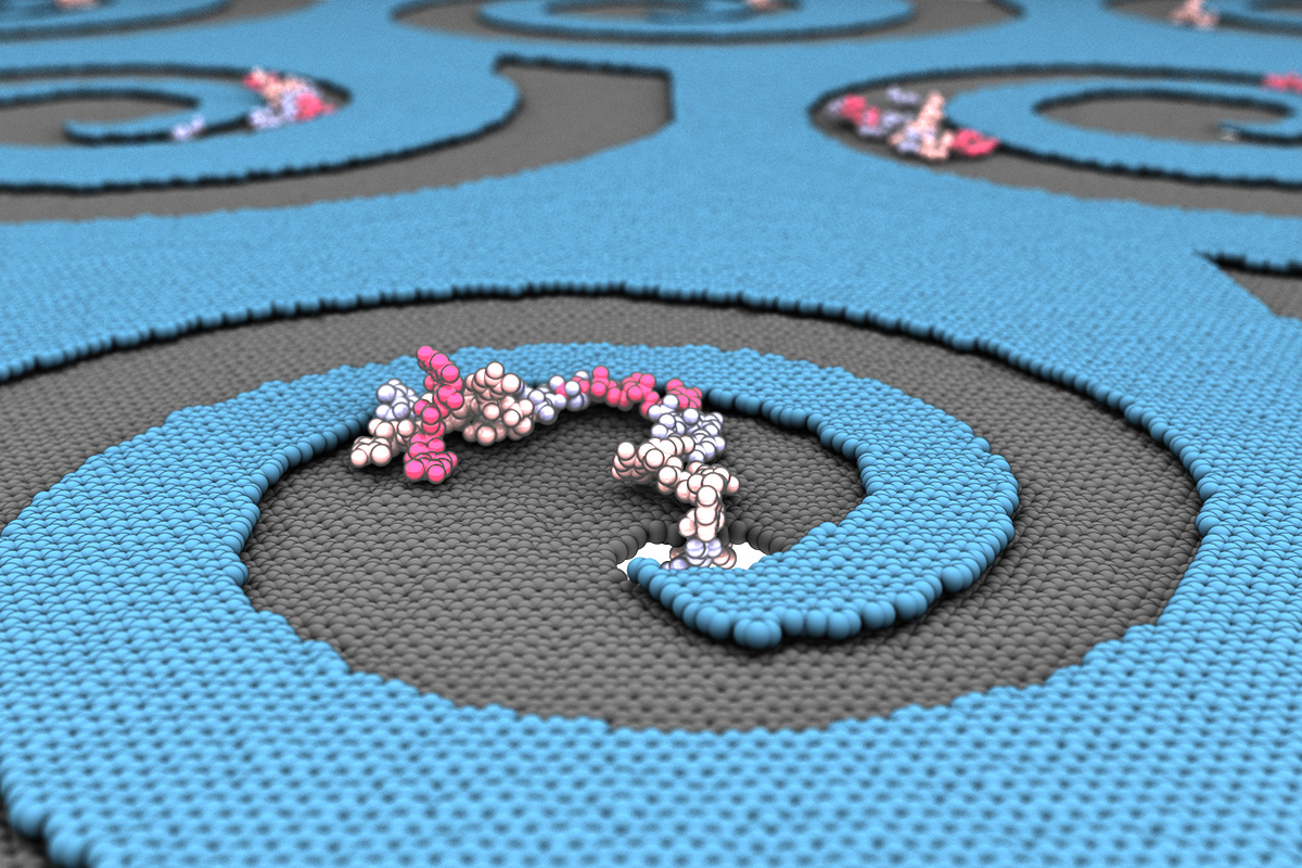 “This way, we can drop molecules anywhere on the membrane covered with these spiral structures and then pull the molecules into a pore,” he said.