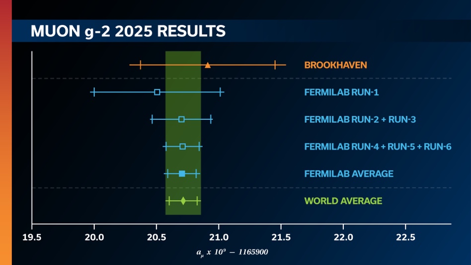 “The anomalous magnetic moment, or g–2, of the muon is important because it provides a sensitive test of the Standard Model of particle physics. This is an exciting result and it is great to see an experiment come to a definitive end with a precision measurement,” says Regina Rameika, the U.S. Department of Energy’s Associate Director for the Office of High Energy Physics.