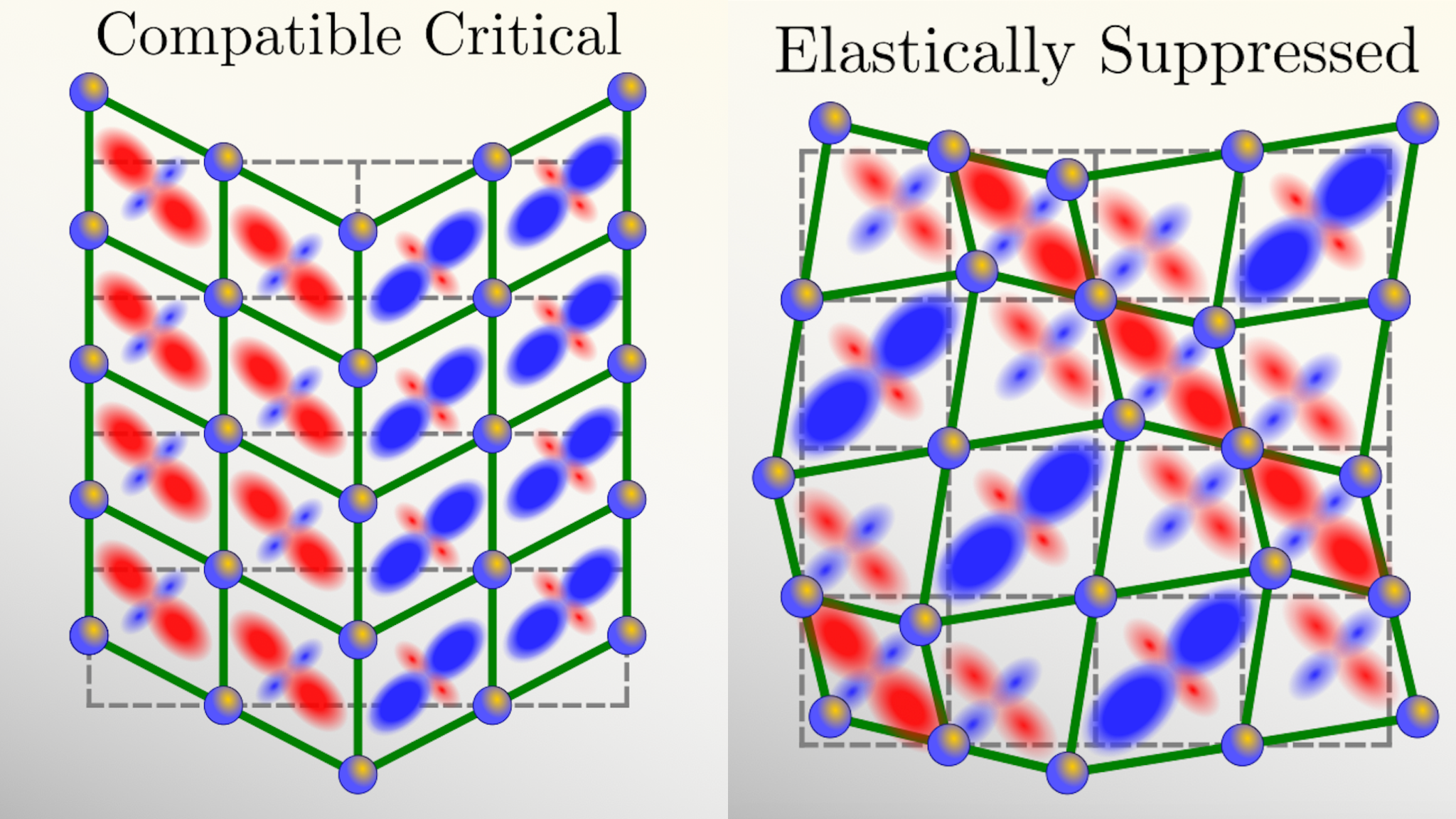 That is, elasticity doesn’t couple to nematicity in a straightforward way. Instead of generating a simple combination of enhancing and suppressive effects on nematicity, as was previously conjectured, Meese and Fernandes found that elasticity enhances only certain aspects of nematicity at the expense of others. Specifically, elasticity selectively enhances the low-energy compatible modes while suppressing the higher-energy incompatible modes, the ones feeling disorder.
