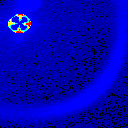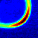 Phonons are quantized vibrations. They can range from low frequencies, such as sound, to very high frequencies, such as heat. The data shown above is at the high frequency end—about 600 GHz. These phonons (heat pulses) are emanating from a small laser-heated region on one surface of a sample cooled to 2 Kelvin and are detected on the opposite surface. The pictures show how the heat arrives at the detection surface; each is essentially a snap-shot of the temperature distribution on the surface at a given instant. The set of images shows how the heat propagates through time.