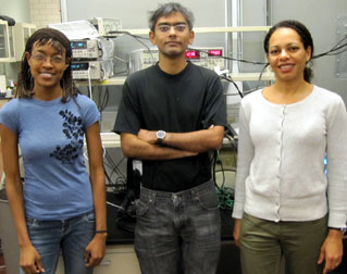 2004A team of researchers, led by Alexey Bezryadin and Paul Goldbart and including their graduate students David Hopkins and David Pekker, use strands of DNA as tiny scaffolds to create superconducting nanodevices that demonstrate a new type of quantum interference phenomenon. These nanowire quantum interference devices (NQIDs) consist of superconducting wires having diameters as small as 5 nm to 15 nm, and they have potential applications in measuring magnetic fields and mapping the phase of superconductivity. The research opens new possibilities for using DNA-based scaffolds in nanoscale electronic devices.