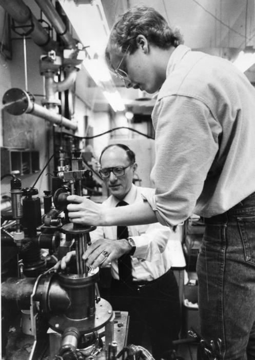 The Science and Technology Center for Superconductivity is established at Illinois (funded by the National Science Foundation) to study the materials, the phenomenon, and possible applications of high-temperature superconductivity. The grant is written by Miles V. Klein, who also spearheads the effort to obtain funds from the Illinois legislature for the building.