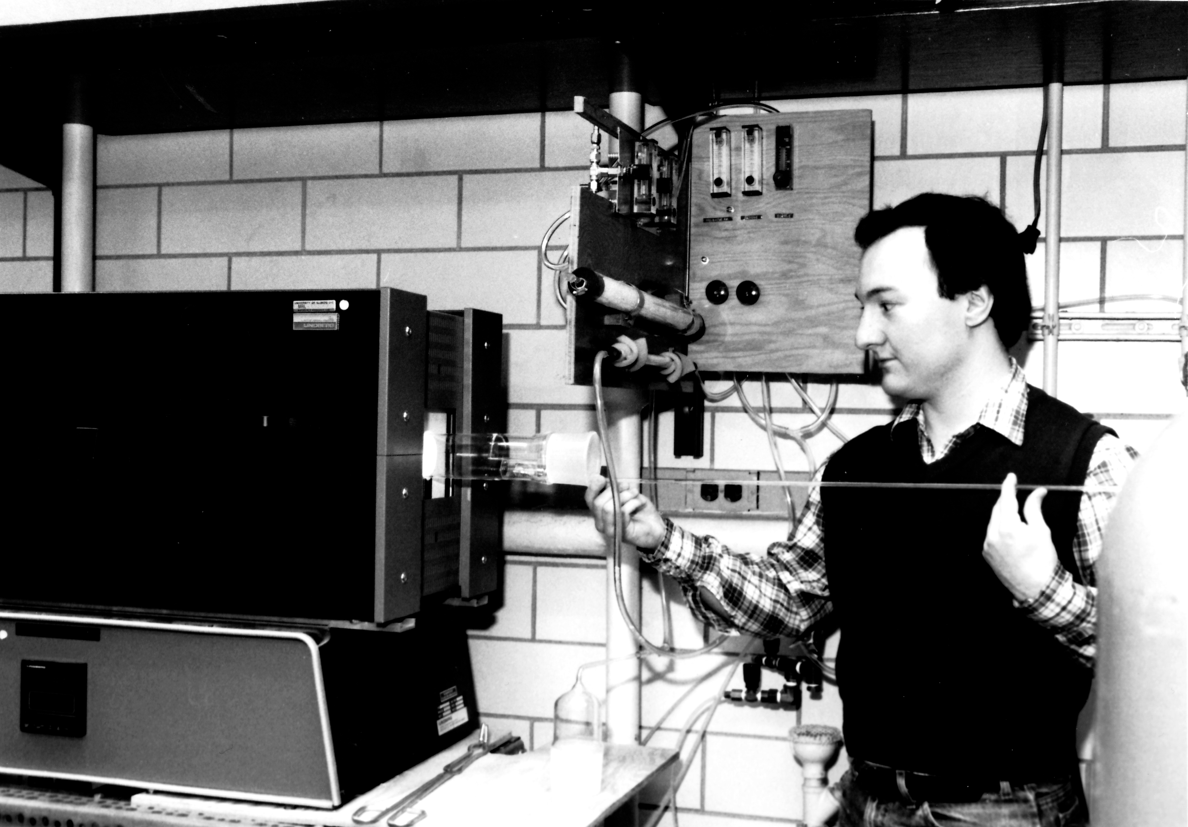 1986Donald M. Ginsberg extends his research to incorporate binary and ternary compounds, finally focusing on the molybdenum chalcogenides (sometimes referred to as Chevrel compounds), perhaps the most complex superconducting materials known at the time. Key contributions to determining the structure and physical properties of the Chevrels are made by Ginsberg and graduate students Donald J. Holmgren, Brian G. Pazol, and William H. Wright, in research spanning 1986 to 1988. Because of the complexity and inherent sensitivity and instability of these Chevrel compounds, Ginsberg realizes the necessity of growing his own well-characterized and clean crystals to measure their fundamental properties. He becomes a world leader in preparing samples of these compounds and supplies crystals to dozens of colleagues for a broad variety of measurements.